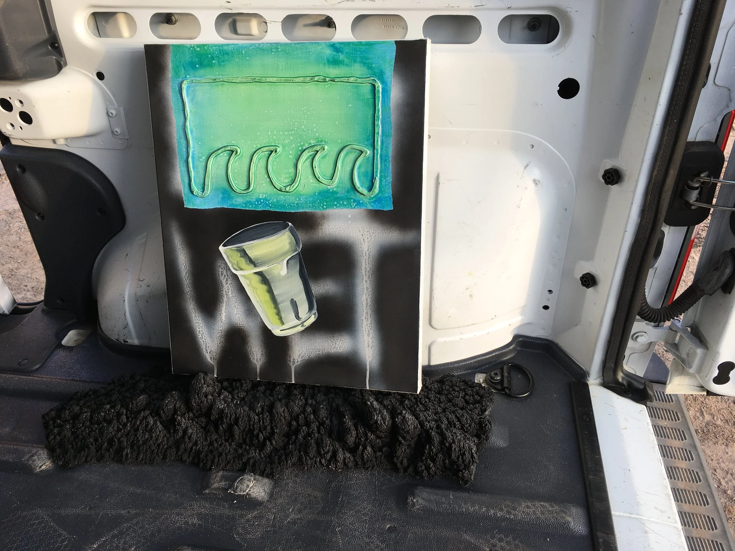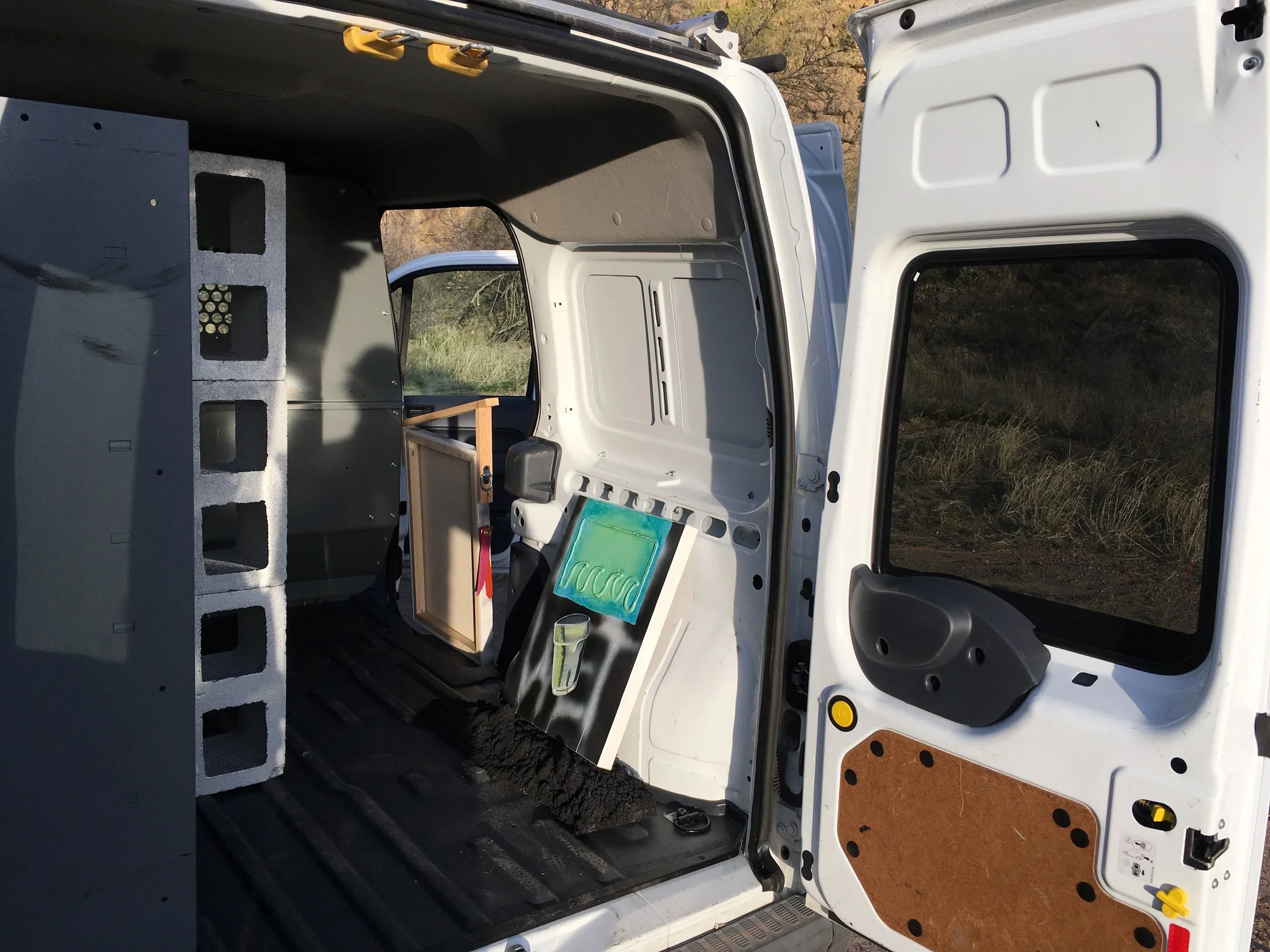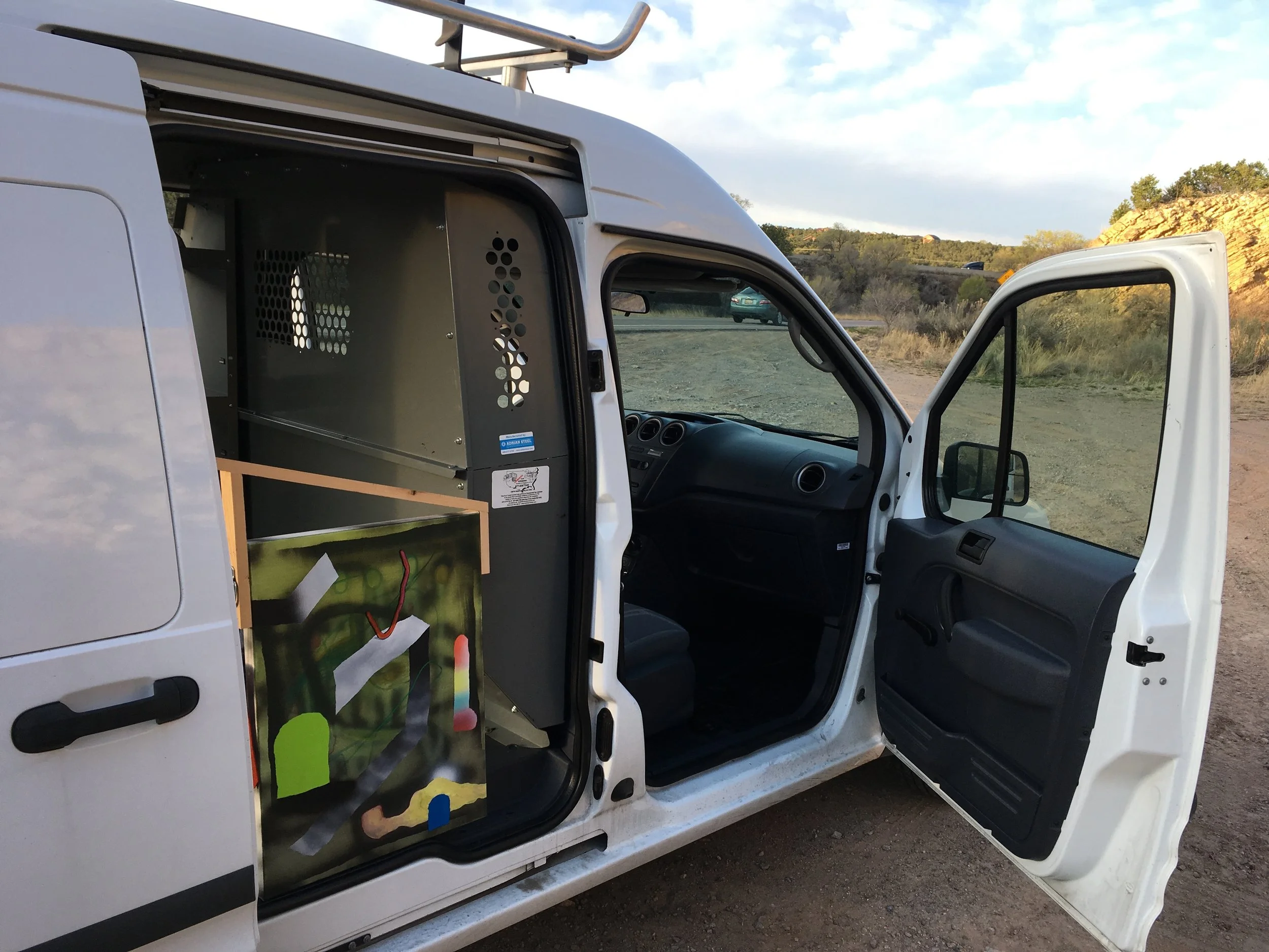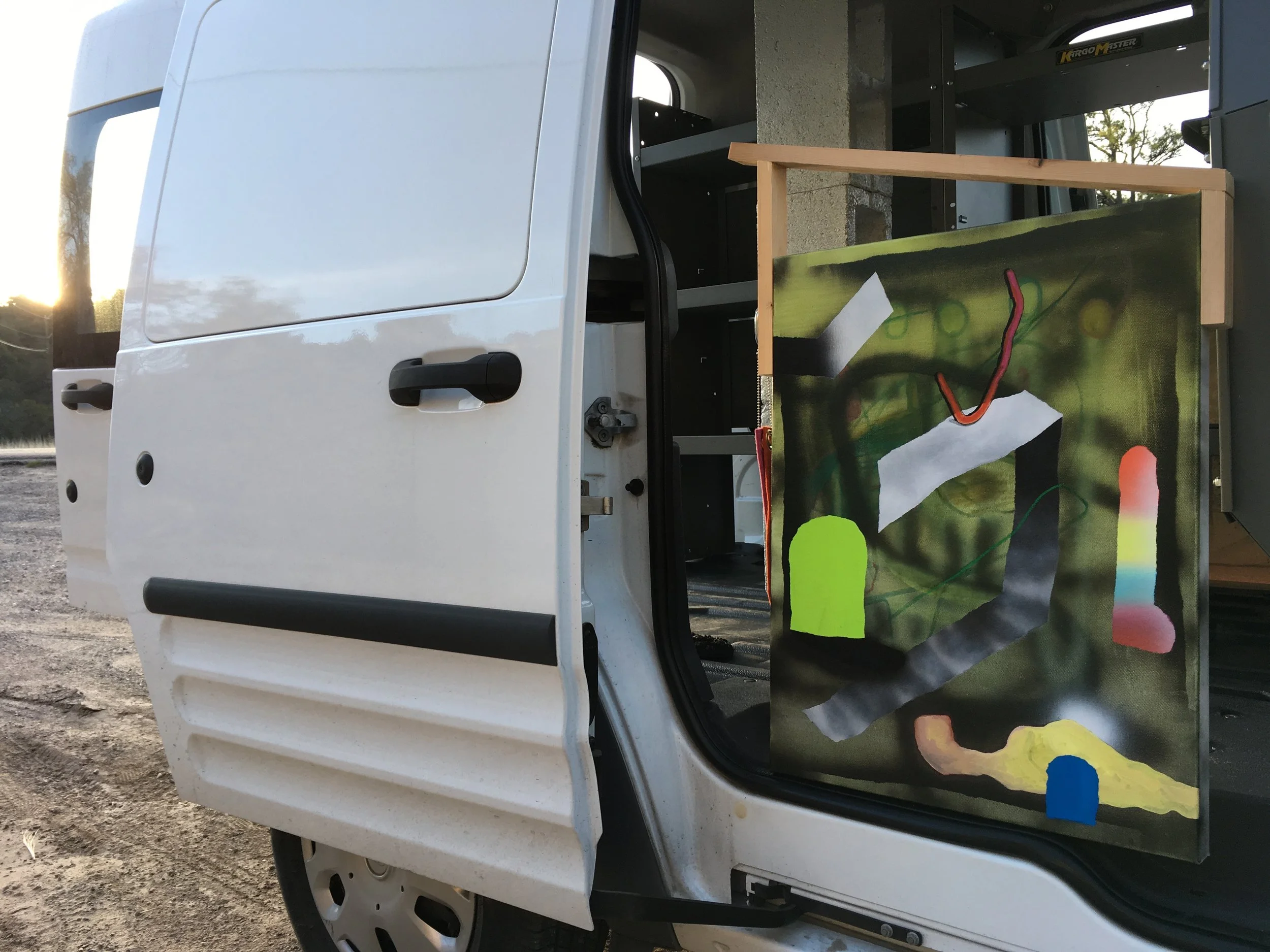 Van, art objects, landscape, and even the artist are all work-in-progress. We are all in transit.