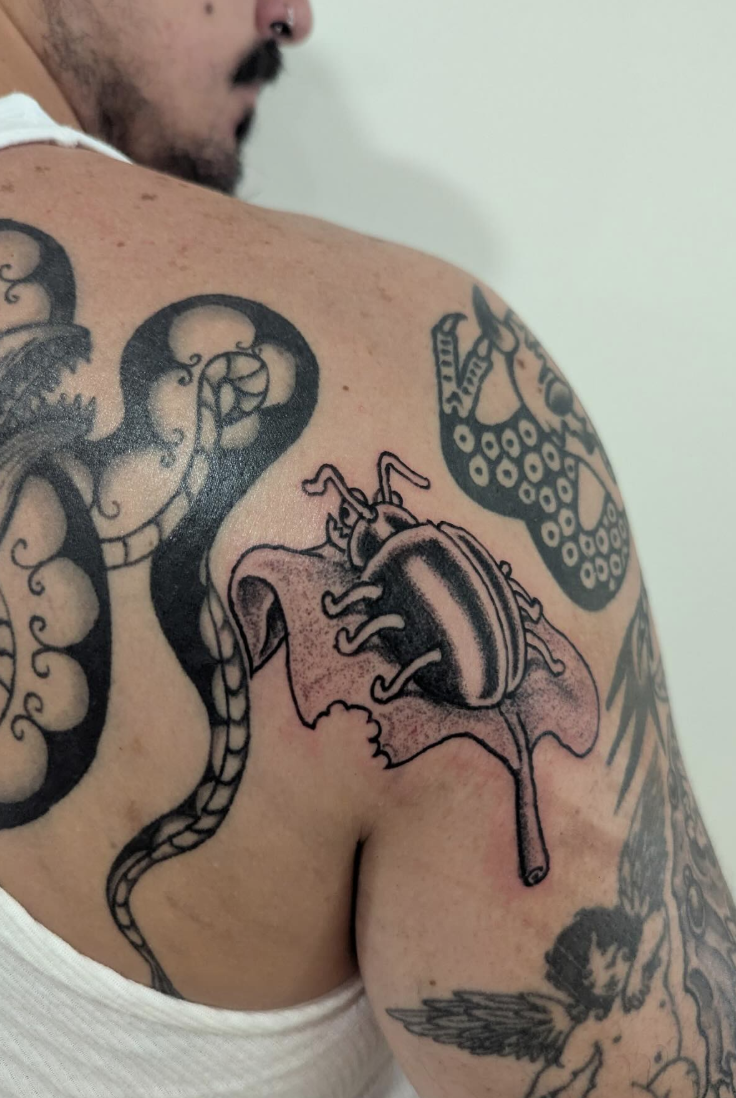 If you are interested in traditional tattoos, color, realism, script, or replication of preexisting imagery please choose one of the many talented and professional tattooers trained in that practice. However, If your concept or desire resonates with my creative practice I would love to work with you.