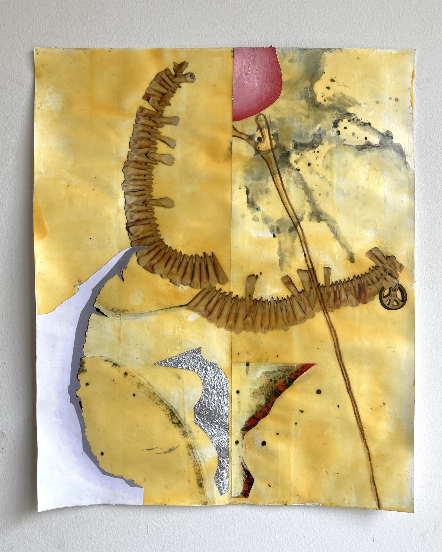 Inkjet print, ink, gesso, wood glue, paper, watercolor, oil paint, & enamel on paper