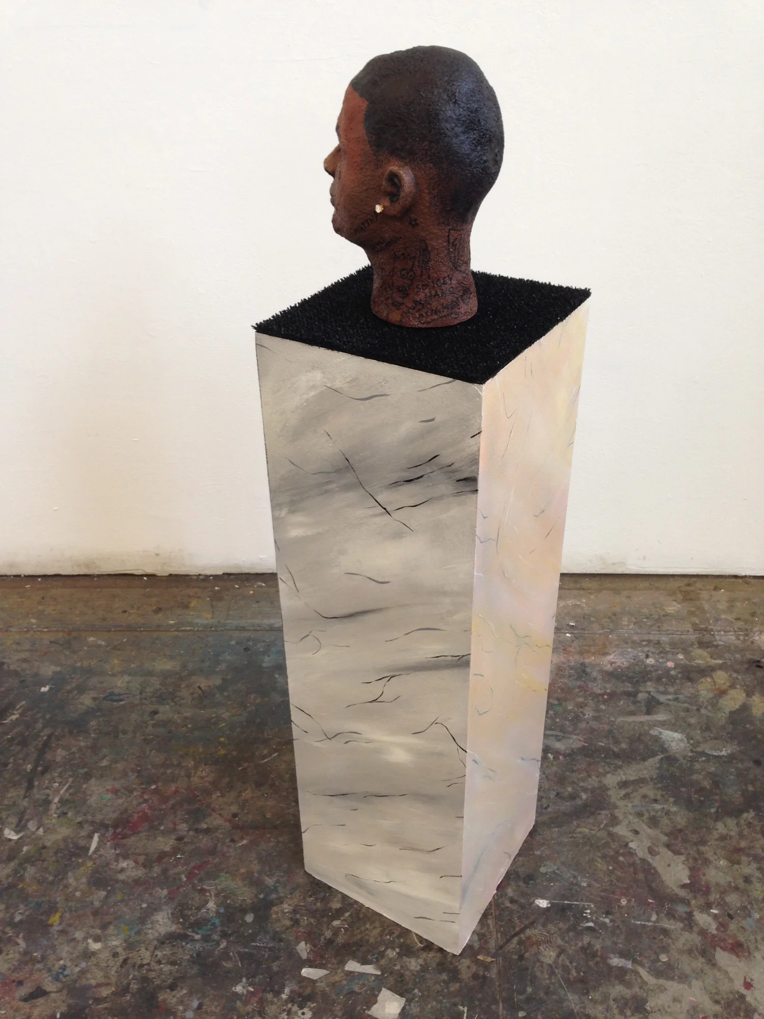 acrylic, spray, enamel, jewelry, astroturf, wood, & styrofoam